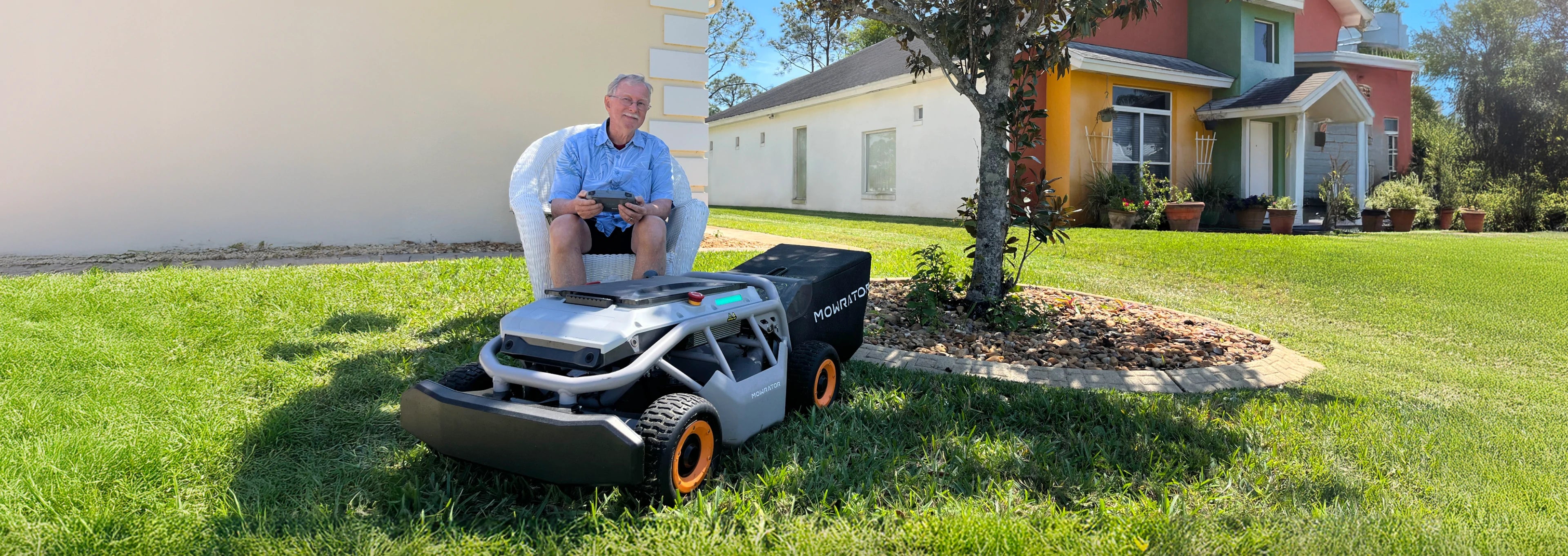 First battle scar. Every time I use the AWD Mowrator, I am so grateful to my son for sending me the Kickstarter link. We have a back yard that is very rocky and has slopes of 45 degrees or more in places. I had been weedeating the grass and weeds using mountain climbing gear to stabilize me as I swung the weed eater around. I can now use the Mowrator to mow almost all of the yard. I have learned that I can disable the tilt sensor and go side to side, using it in reverse to negotiate the steep slopes instead of 180 degree turns. Today I hit a couple of rocks. Then I hit an obviously large rock hidden in the grass. We had been gone for an extended trip and the grass was between 12-16 inches high. The result is what you see here. Blade bent and cutting a gash into the blade shield. Luckily, I had ordered the 3 replacement blade set. So I removed the bent blade and put on one of the high lift blades.