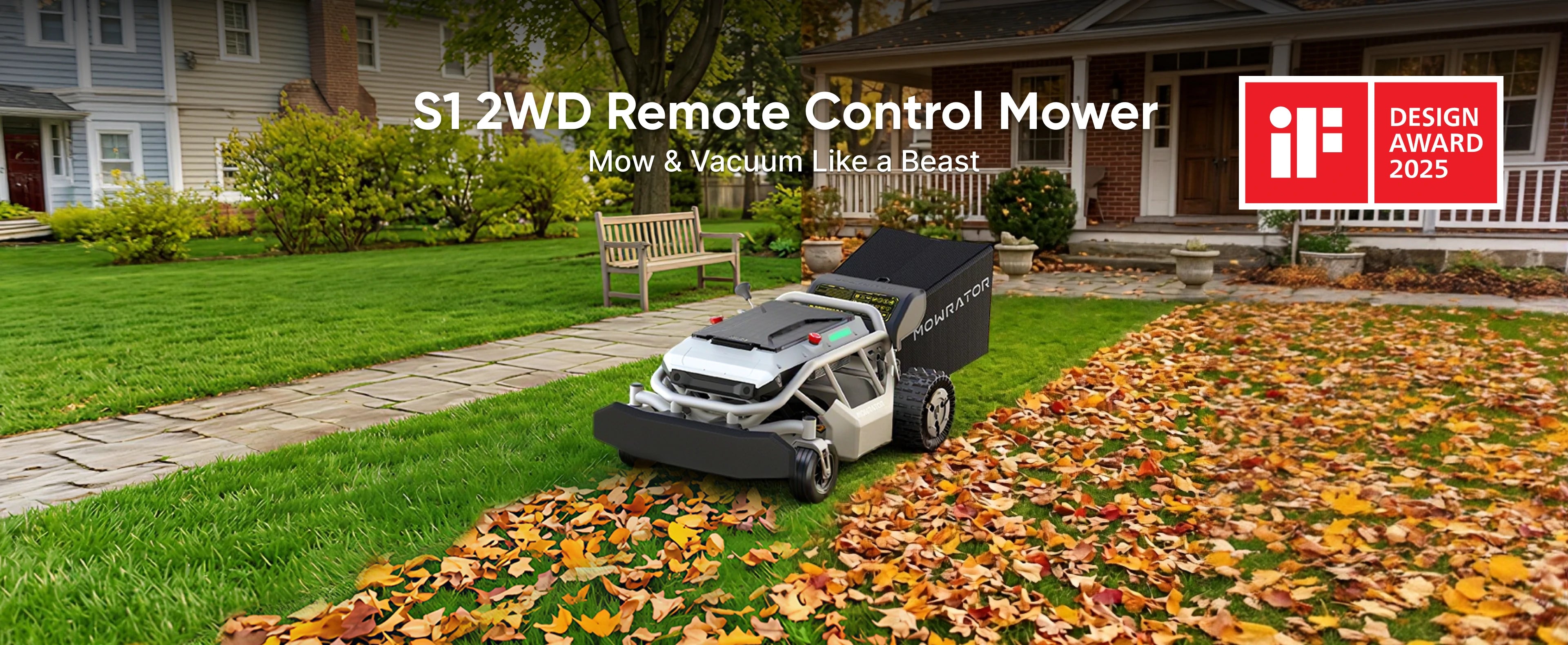 In stockMowrator S1 2WD 45% Slope Remote Control Lawn Mower with Leaf Shredding Vacuum
