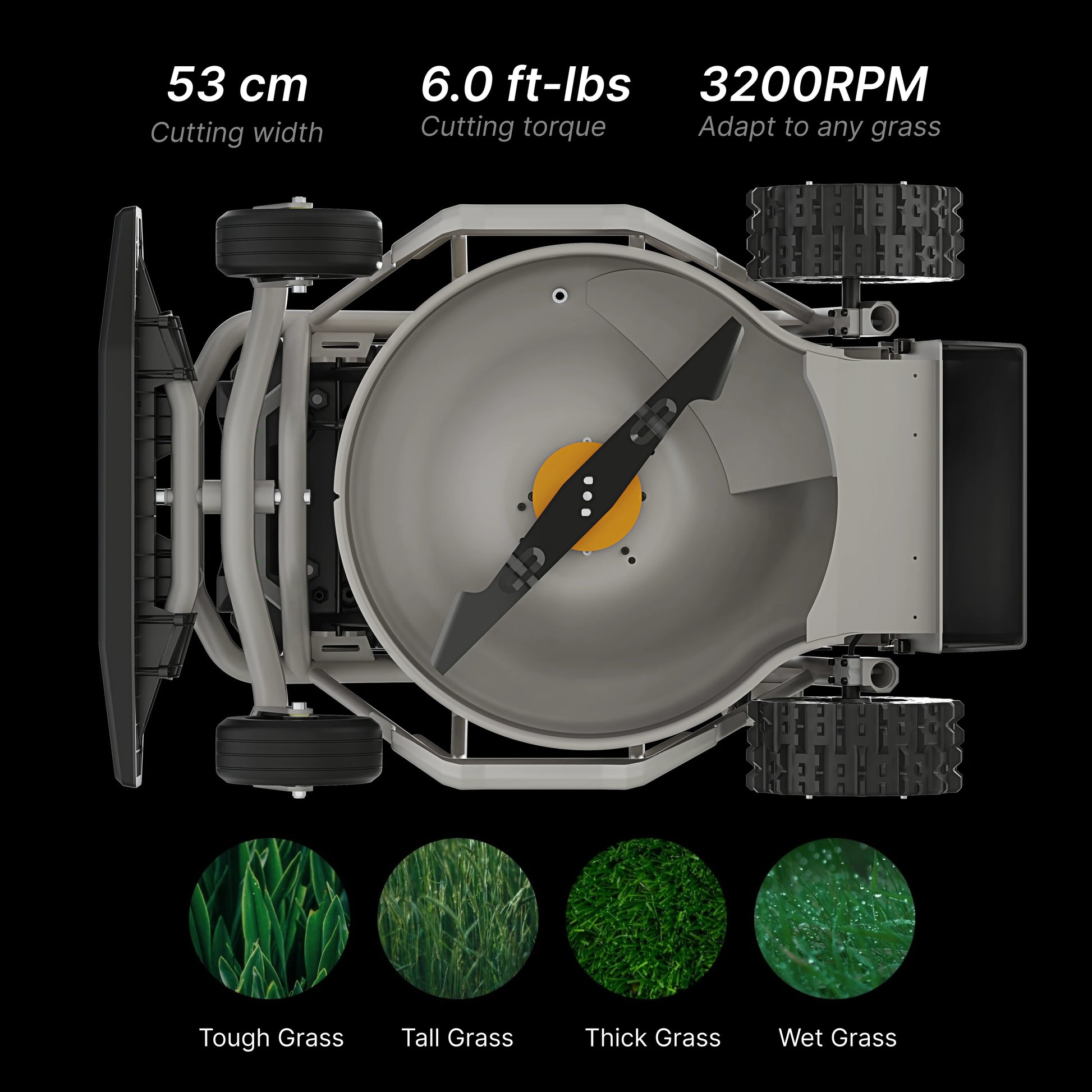 In stock- 53 cm Deck, 6.0 ft-lb Torque for Dense Grass & Leaves
