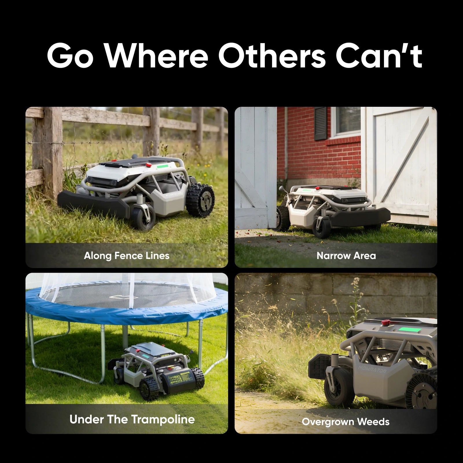 Reach every corner easily, create a flawless garden—no manual work! Even under trampolines, low-hanging trees & snake-prone areas.